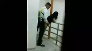 إباحية قاسية على السلالم: حارس أمن يضرب فتاة عاهرة على الدرابزين.